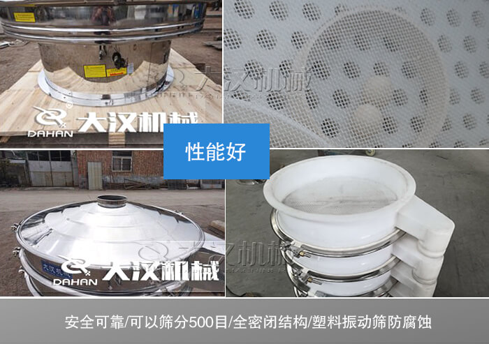 4、針對(duì)強(qiáng)酸、強(qiáng)堿的篩分環(huán)境,我們廠家還有材質(zhì)為聚丙烯防腐蝕的塑料振動(dòng)篩,可以輕松解決酸、堿形物料的篩分。