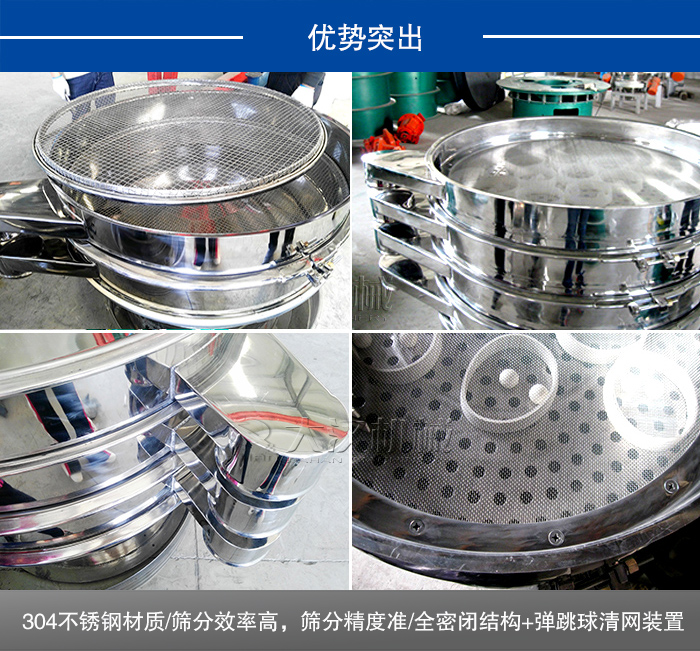 3、全密閉結(jié)構(gòu)+彈跳球清網(wǎng)裝置,網(wǎng)孔不堵塞、粉末不飛揚。