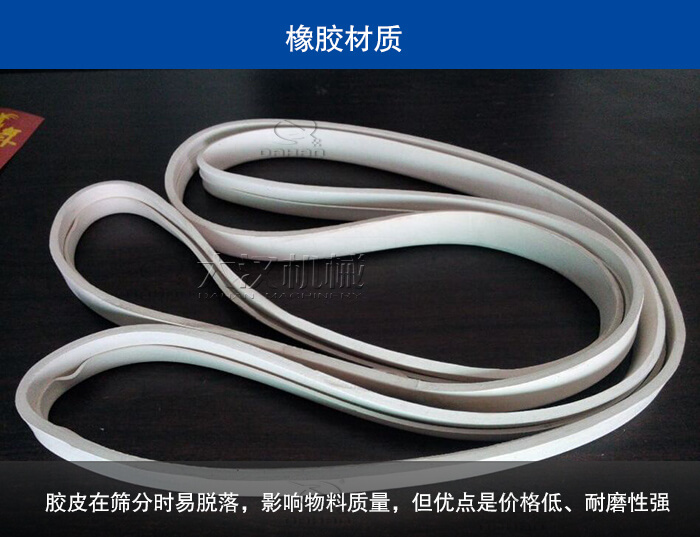 橡膠材質的密封件中使用廣泛,,但在食品、化工類行業(yè)使用較少,因為橡膠本身對于物料會有一定的污染成分,膠皮在篩分時易脫落,會嚴重影響物料質量,但其價格低、耐磨性強,用戶在購買振動篩應根據物料的不同要求安裝合適的密封件。