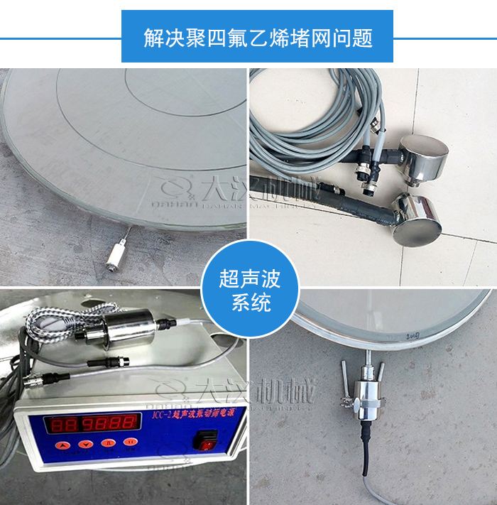 聚四氟乙烯在篩分時(shí)由于其物料性質(zhì)所以會(huì)容易出現(xiàn)堵網(wǎng)問題,超聲波旋振篩獨(dú)特的超聲波系統(tǒng)可以將可以將220V、50Hz或110V、60Hz電能轉(zhuǎn)化為18KHz的高頻電能,輸入超聲換能器,將其變成18KHz機(jī)械振動(dòng),加快物料的分離,減少篩上物,可以解決聚四氟乙烯堵網(wǎng)問題。