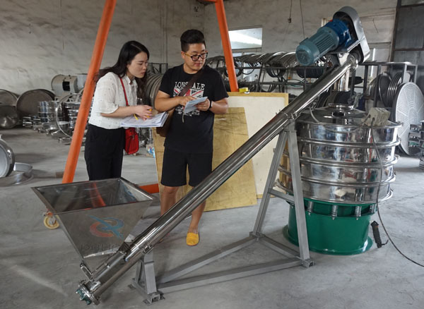 螺旋輸送機為不銹鋼材質(zhì)跟旋振篩配套使用,進(jìn)料口端加不銹鋼料斗,方便進(jìn)料;該旋振篩為不銹鋼旋振篩,底桶為碳鋼材質(zhì),與物料接觸為不銹鋼材質(zhì)。
