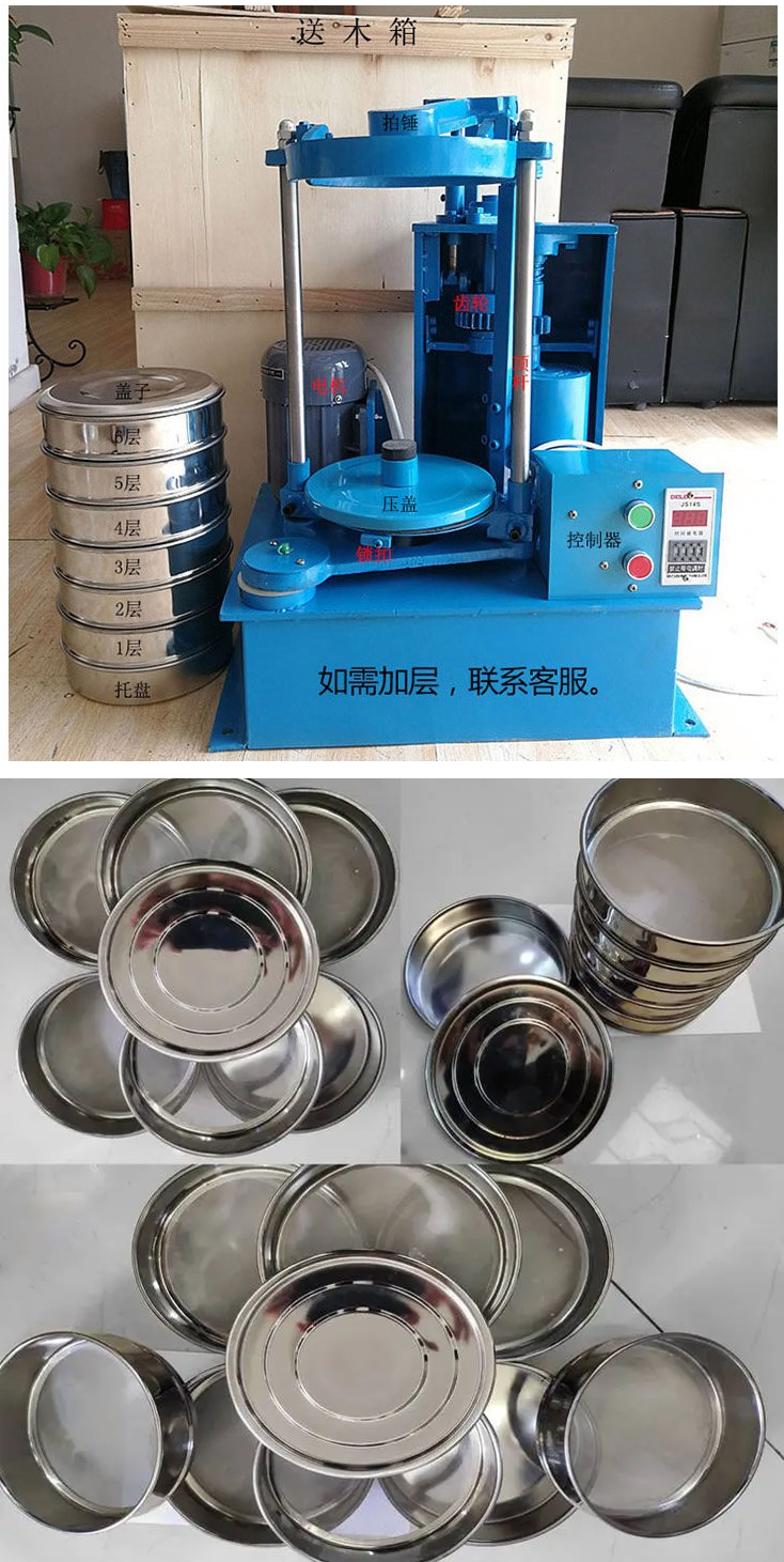3、可容納1~8個(gè)篩子(包括篩底),可連續(xù)分選7個(gè)不同粒度段的樣品。