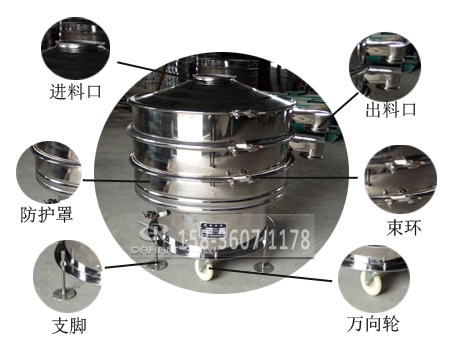 移動式不銹鋼旋振篩簡介:移動式不銹鋼旋振篩底部加裝萬向輪方便移動,可根據(jù)現(xiàn)場的需要安裝使用