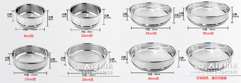 8英寸/12英寸/18英寸標準試驗篩:篩網(wǎng)直徑分別為8英寸(203mm)、12英寸(304.8mm)和18英寸(457.2mm),可選擇不同層數(shù)的篩網(wǎng)。