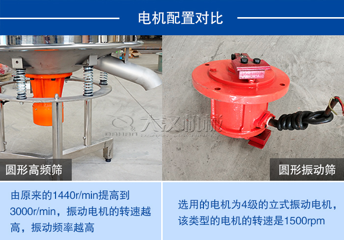 圓形高頻篩振動頻率由原來的1440r/min提高到3000r/min,振動電機(jī)的轉(zhuǎn)速越高,振動頻率越高,因此堵網(wǎng)情況大大減少。