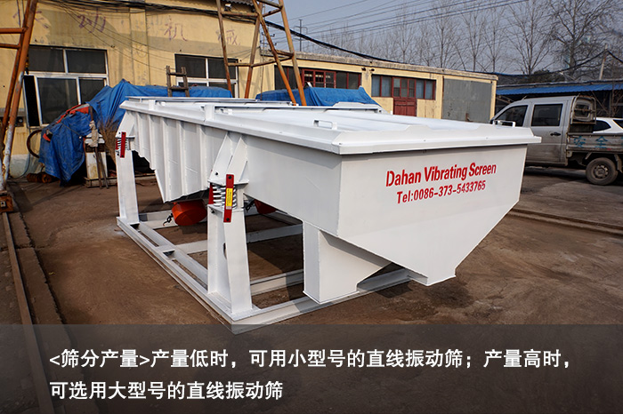 產(chǎn)量低時,可選用小型號的直線振動篩;產(chǎn)量高時,可選用大型號的直線振動篩,如電機(jī)功率也需要根據(jù)螺帽分級直線振動篩產(chǎn)量大小來選擇合適的型號。